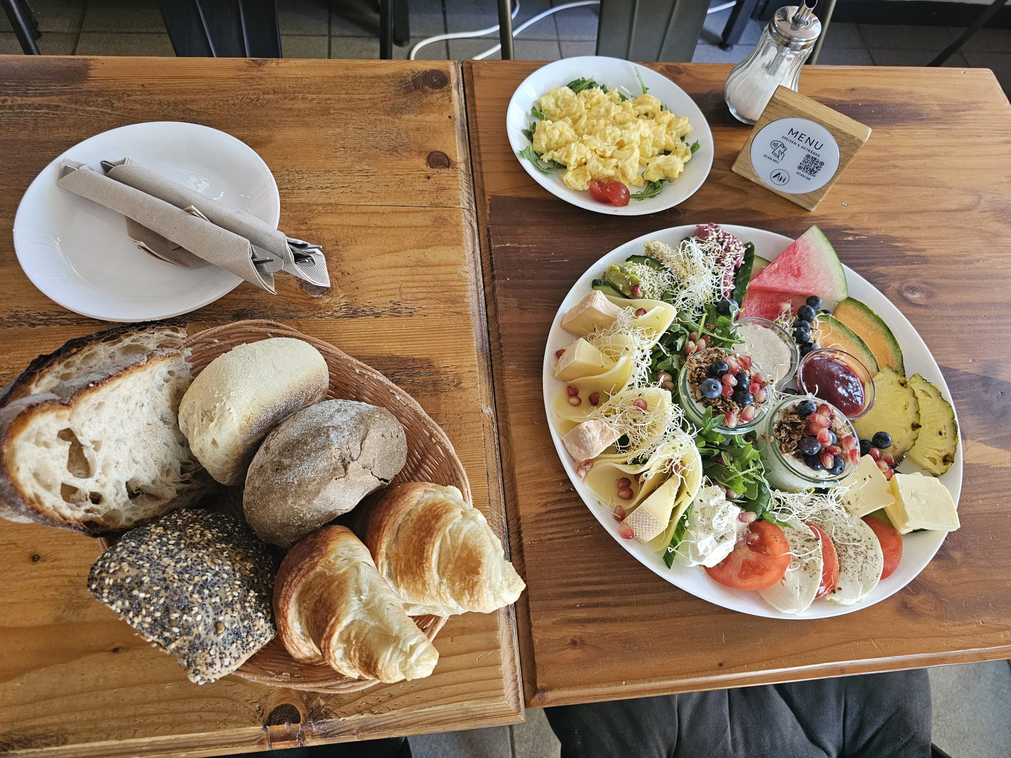 Only homemade sweet spreads are served at the table, including the delicious Franzbrötchen cream that makes many customers truly addicted, as well as jams. There are also savoury dips, such as creamy curry-date cream and avocado mash. For vegans and anyone who wants to eat consciously, we also offer a delicious smoothie bowl as well as a muesli bowl with homemade granola and fresh fruit on our menu.